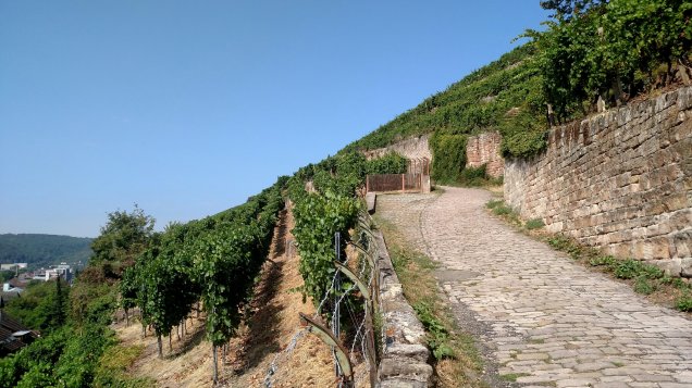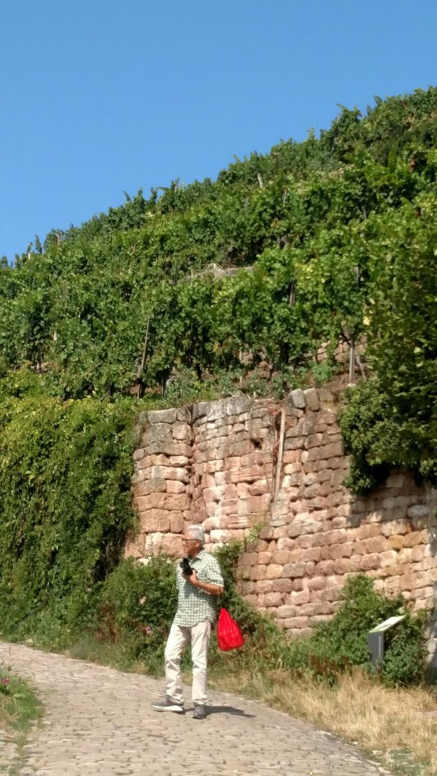 Within the city walls are ancient homes used today for residences and businesses. The Neckar river runs through the town and the whole thing looks like a fairy tale. We walked around St. Dyonisius and found our way on a wine trail.